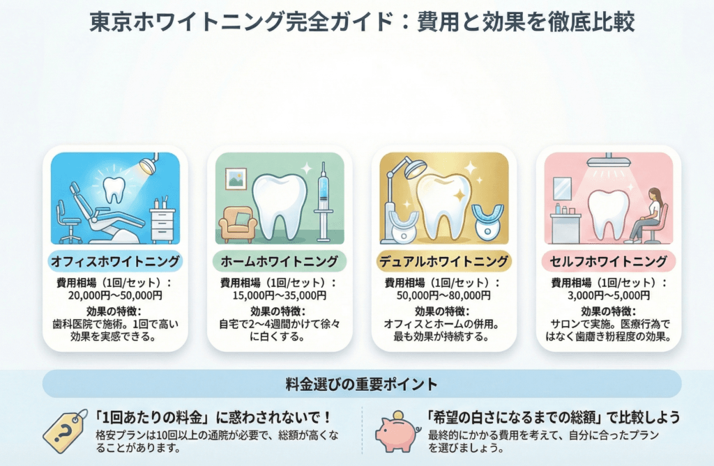 東京でホワイトニングを受ける場合の費用相場は以下のとおりです。