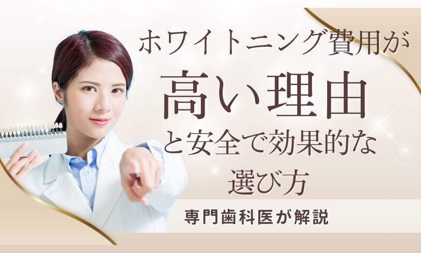 本記事では、ホワイトニングの費用が高い理由から、安全で効果的な選び方まで、専門歯科医の立場から詳しく解説いたしました。