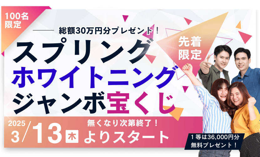 2025年3月13日(木)より、春の新生活応援企画として、 総額30万円分をプレゼントする超お得にホワイトニングが受けられる 企画スタート!